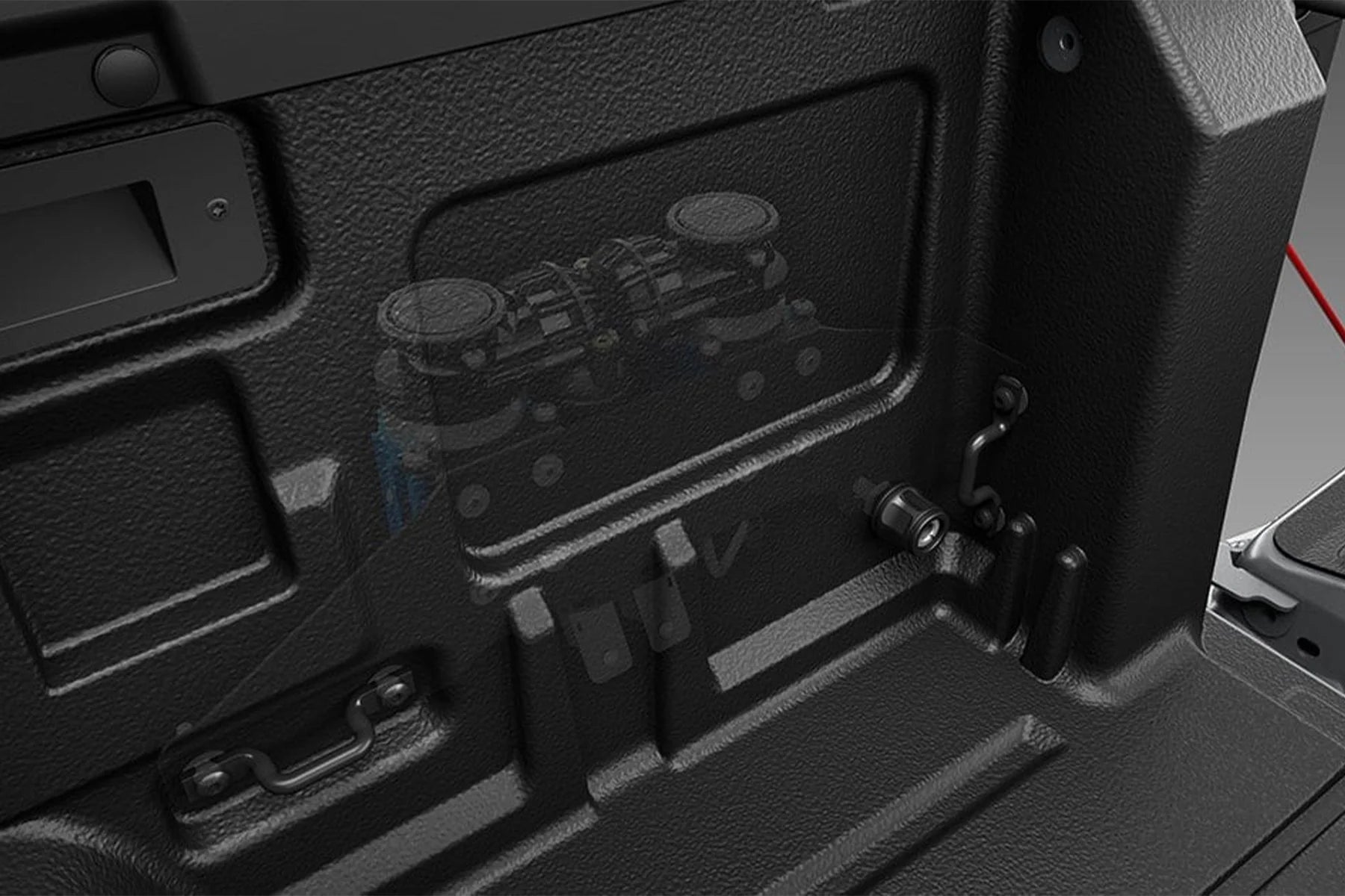 - During installation, the existing recesses in the side panels can be used as a template for drilling holes in the load compartment on vehicles with painted bed, Raptor coating for example