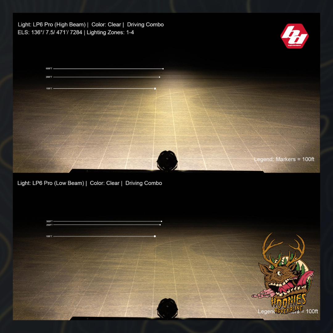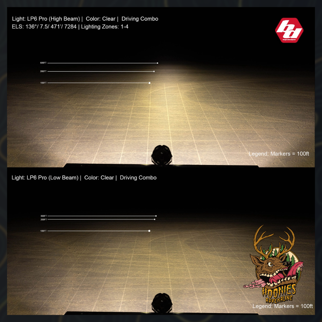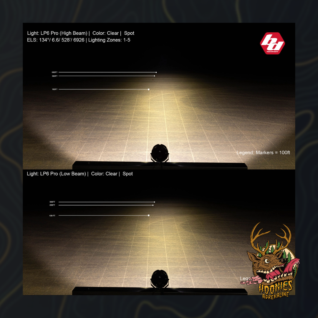 Available in various patterns, the LP6 Pro suits diverse preferences. The Driving/Combo pattern offers maximum trail coverage with a blend of driving (42 degrees) and spot (8 degrees) optics for both near-field and distance applications. The Spot pattern, with its longer and narrower 8-degree beam focus, illuminates further down the trail or road, ideal for use with additional wide cornering or driving/combo auxiliary lights in Lighting Zones 4 & 5.