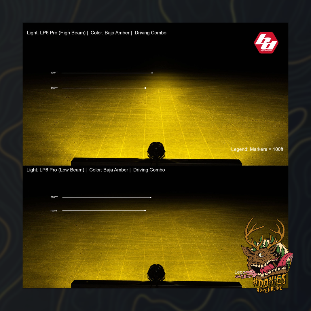 The Baja Designs LP6 Pro stands as the ultimate off-road lighting solution, offering a formidable all-in-one package. Thanks to our specialized Integrated Peripheral Technology (IPT), the LP6 Pro provides a 200-degree spread of usable LED light, delivering a total of 11,225 raw lumens to cut through the darkness. Ideal for a wide range of vehicles, including Jeeps, trucks, motorcycles, UTVs, adventure vans, and any vehicle requiring additional lighting. Explore our array of accessories for the LP6 Pro lights, featuring rock guards, replacement lenses, security hardware, IPT covers, and harnesses – ensuring that your LP6 Pro LED light achieves its maximum potential.