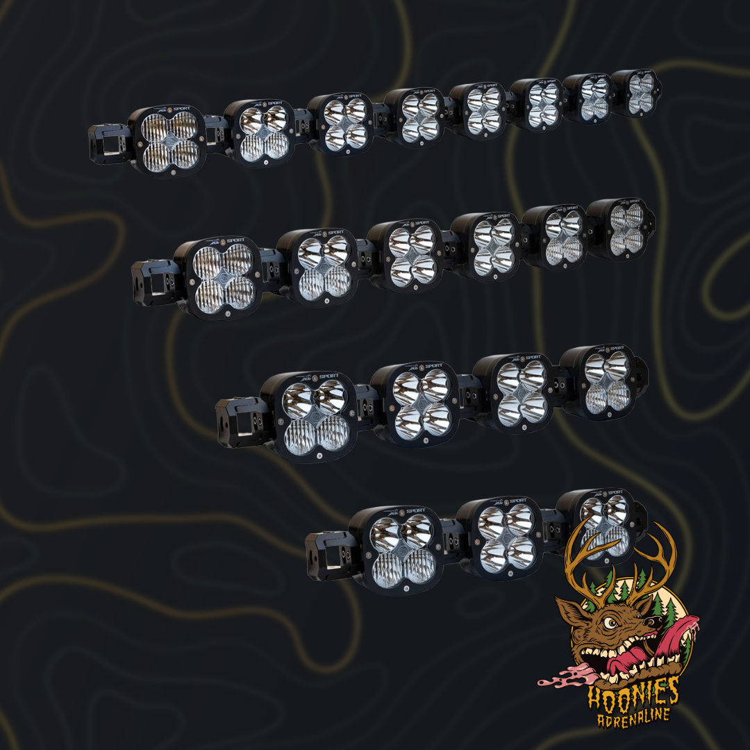 Experience full adjustment and total performance with the Baja Designs XL Sport Linkable LED light bar kit, engineered for enthusiasts seeking to take charge with a lighting package that is completely customizable. Built around our popular XL shallow moto housing, each light offers 3,162 raw lumens each from our next generation LEDs and can be configured with 3 up to 9 forward projecting lights that provide a smooth blend due to the use of multiple lens pattens illuminating zones 1, 2, 3 and 4 simultaneously. The unique feature of our XL Linkable system provides 45 degrees of vertical pitch adjustment within each light or the entire unit. Completely independent horizontal adjustment per light allows for straight or arc configurations to perfectly match the lines of your vehicle’s bumper or roofline. The wiring comes fully crimped and trimmed, allowing for easy installation and the ability to add links down the road, and black rock guards are included to protect the lights when not in use. If you're looking to have a lighting system that performs as well as it looks, this is the auxiliary light kit for you!