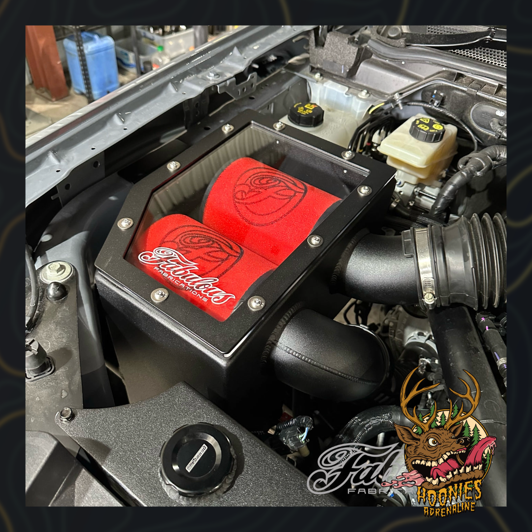 Each airbox comes powdercoated Dulux Mannex Black, with a 4.5mm nitrile gasket, alloy pressure plate and 6mm perspex lid with laser engraved Fabulous Fabrications logo, to ensure a long lasting seal.